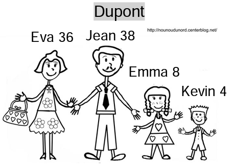 b) Déclarer une variable pour la famille Dupont et l’initialiser d’après cette photo de famille :