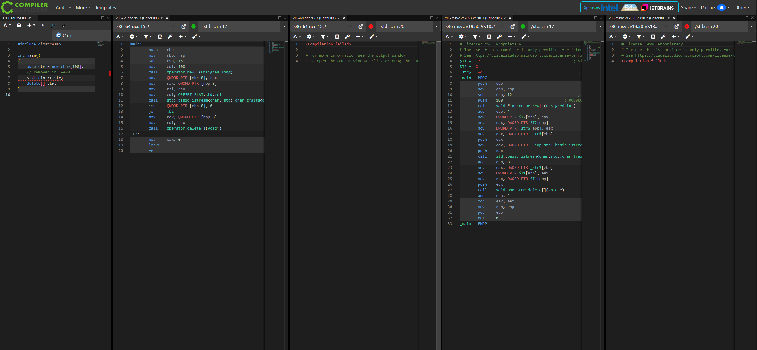 }Avec C++17, ce code compile et fonctionne (même s’il est dangereux). Avec C++20, ce code ne compile plus, et génère l’erreur suivante :