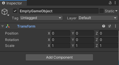 En particulier, un Empty, qui représente donc un GameObject vide, contient un Component de type Transform.