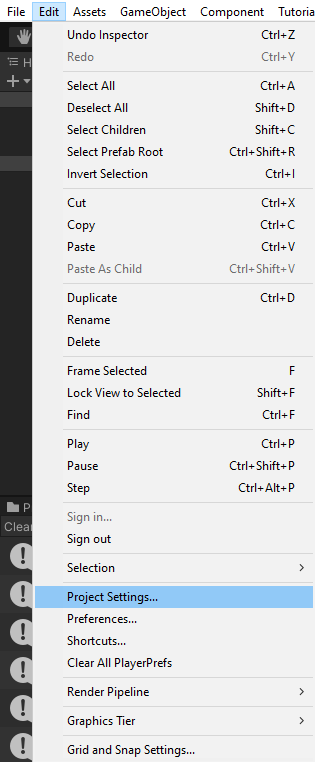 Dans Unity, ces entrées sont configurables en allant dans le menu Edit > Projects Settings :