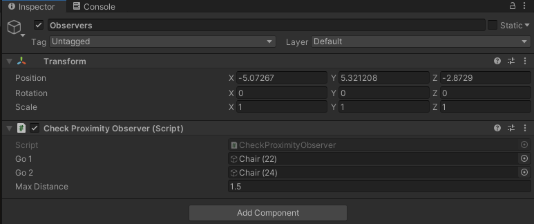 Il suffit donc de faire un drag-and-drop des GameObjects que l’on souhaite utiliser :