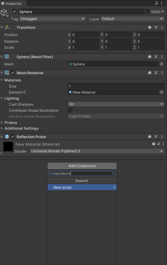 S’il n’est pas présent, alors il est automatiquement créé en cliquant sur New Script puis sur Create and Add.